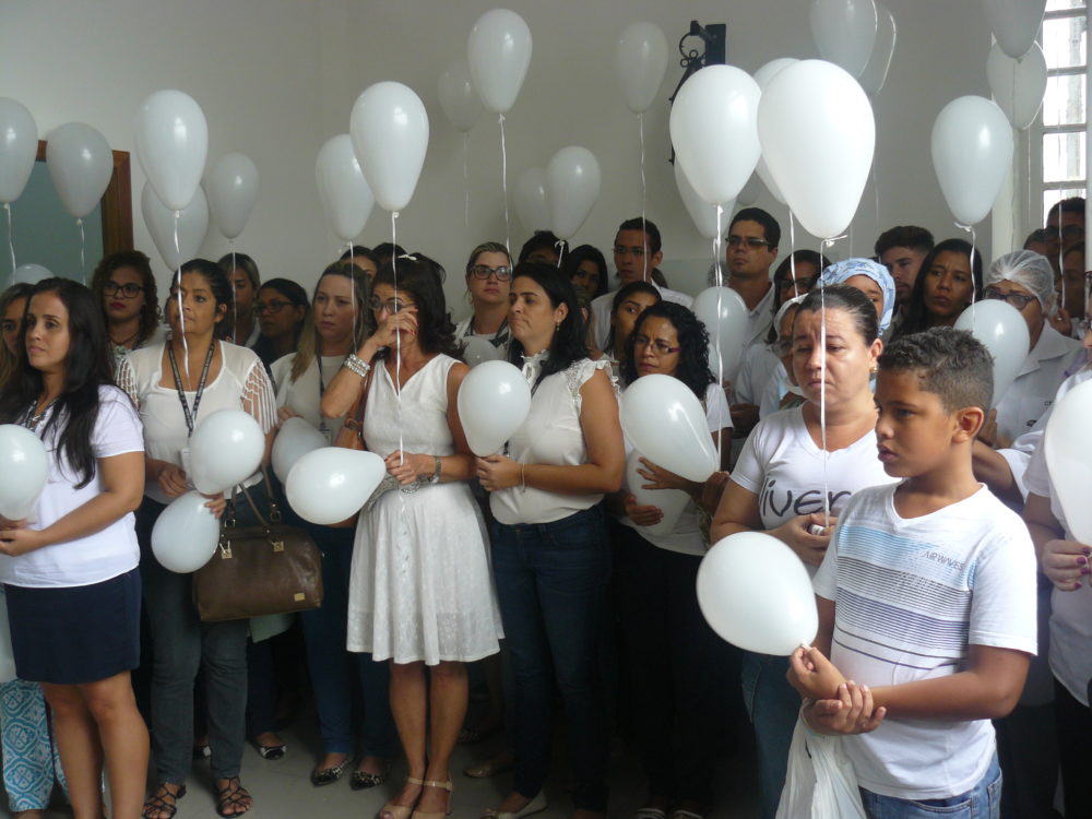 Vestidos de branco e com balões brancos, 27 deles representando o número dos anos de trabalho exercidos com afinco à saúde na Santa Casa de Misericórdia de Itabuna, mais de 100 pessoas, entre colegas de trabalho, familiares, imprensa e amigos da Técnica de Enfermagem Maria Ferreira Lima, 51 anos, participaram no final da manhã de hoje do ato “Itabuna Pede Paz”.