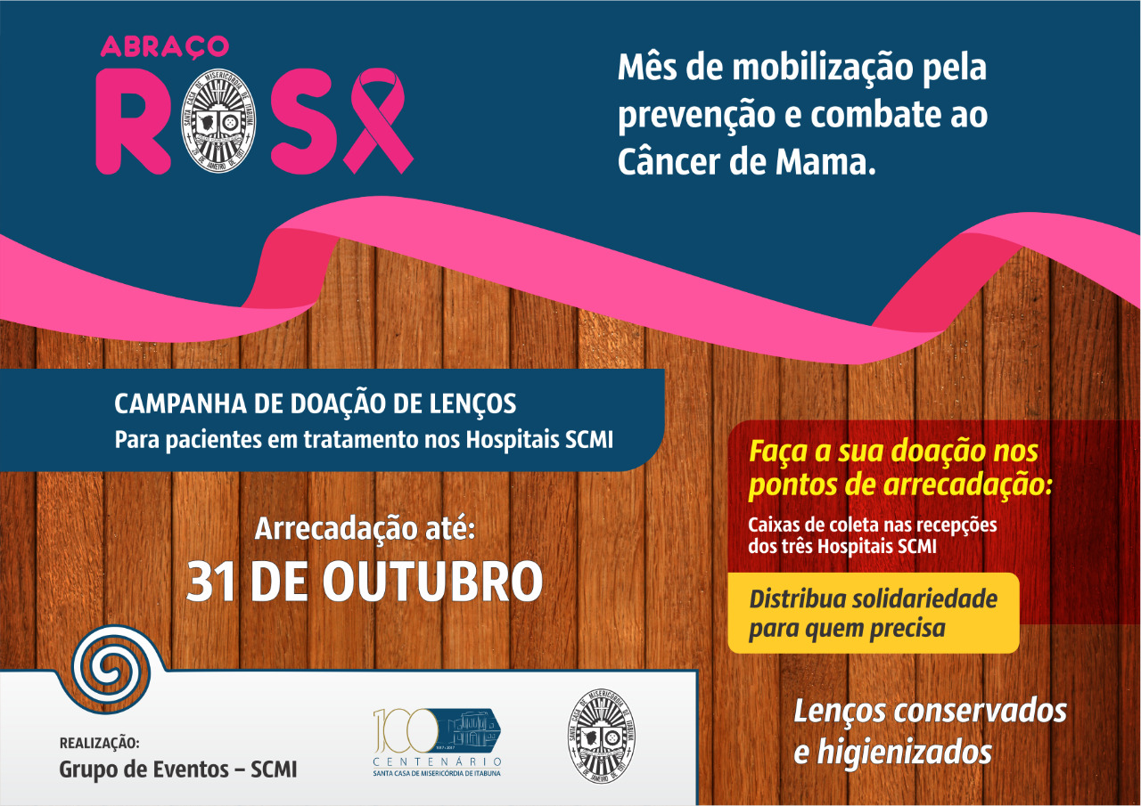 Durante toda Expoita a Santa Casa de Itabuna manterá um stand com ações voltadas para a Campanha Abraço Rosa, com destaque para a venda de produtos destinados à arrecadação de recurso para o Grupo de Apoio ao Paciente Oncológico (GAPO). No local estarão sendo comercializadas camisas do Outubro Rosa, copos, canecas e kits de esmaltes. Ainda no stand, o visitante poderá participar da campanha de arrecadação de lenços, que serão doados a mulheres em tratamento contra o câncer nas Unidades de Quimioterapia e Radioterapia da Santa Casa de Itabuna.
