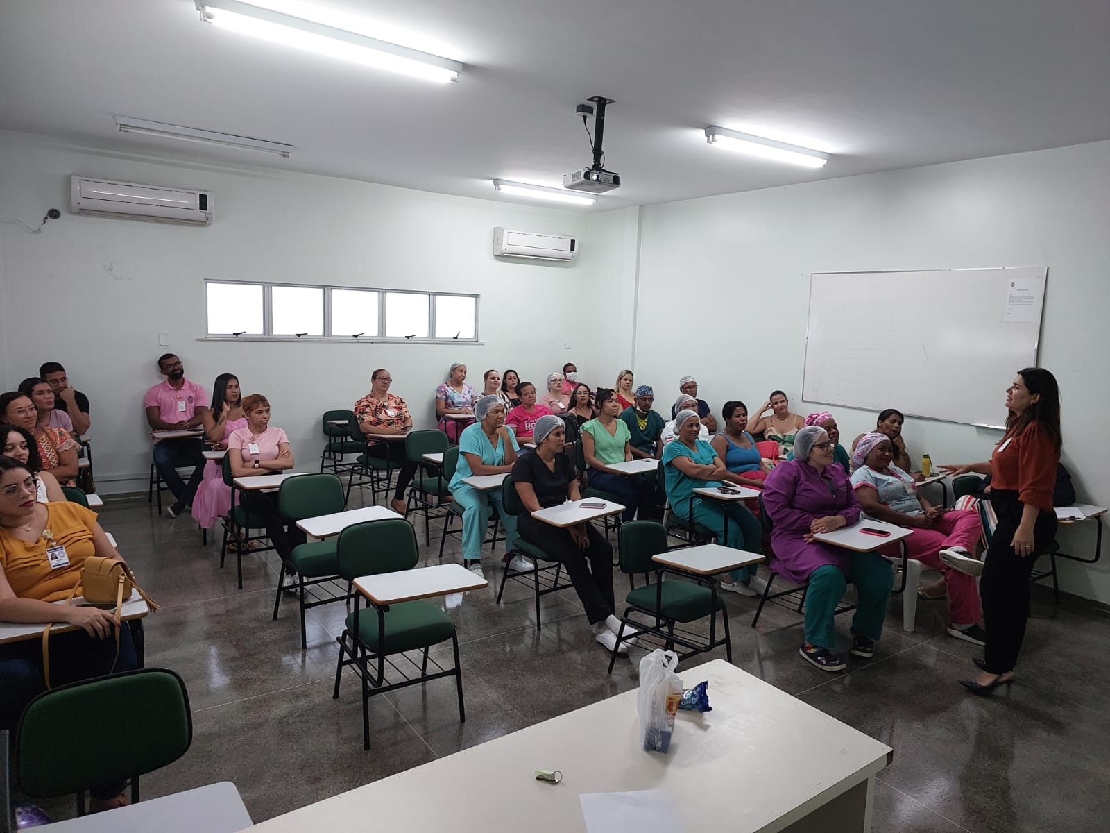 No treinamento, houve troca de informações sobre as hard skills e a soft skills, que são as competências técnicas e competências comportamentais na atuação profissional, e orientações sobre as diretrizes da instituição, para assegurar a prestação dos serviços oferecidos, com padrão de qualidade.