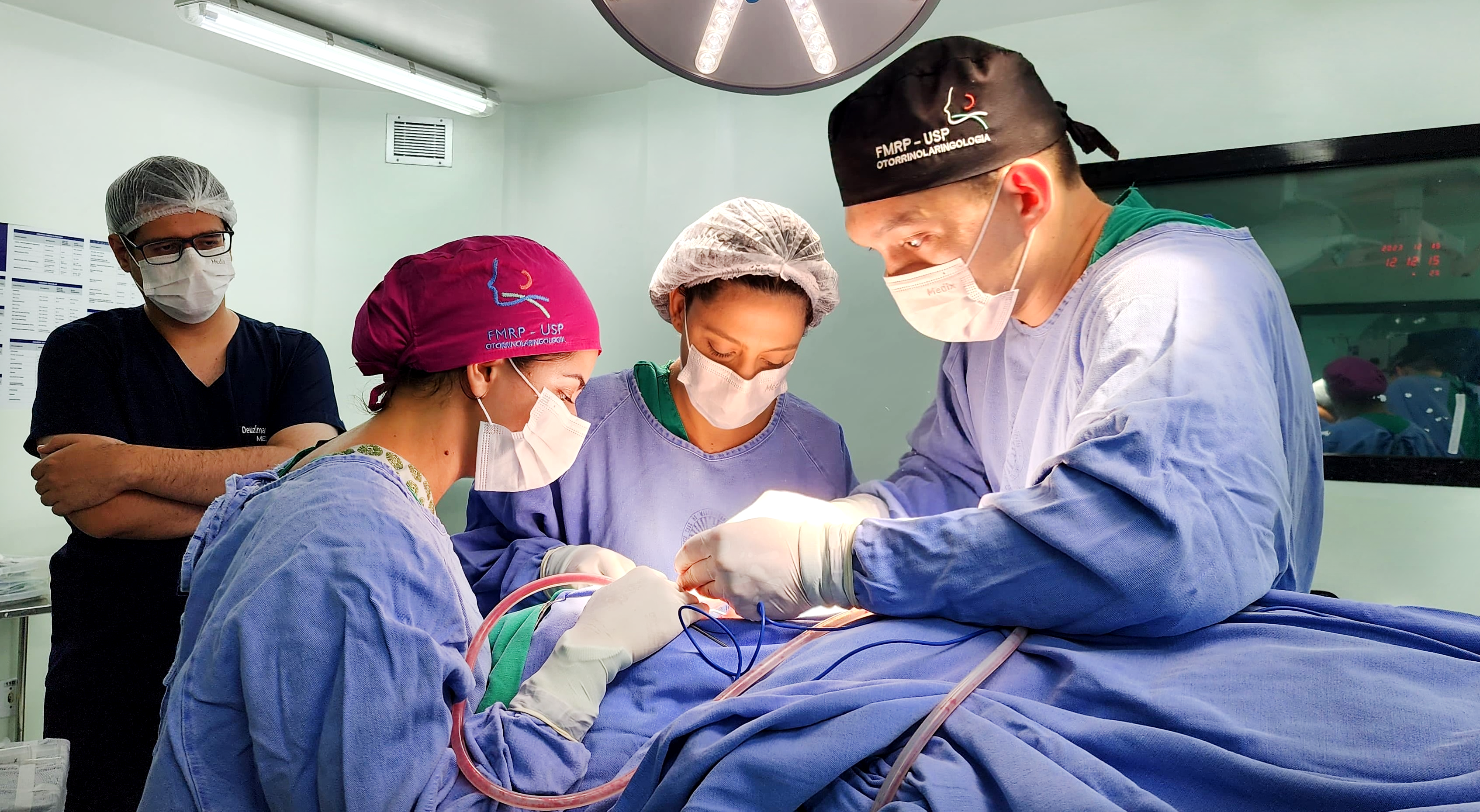 A cirurgia para colocação de um dispositivo eletrônico que transmite som, por meio de vibração, até órgão da audição, foi realizada, com sucesso, por uma equipe do médico otorrinolaringologista Guilherme Fenólio. O procedimento, que consiste na implantação de uma prótese de titânio no osso temporal, atrás da orelha do paciente, durou pouco mais de uma hora.