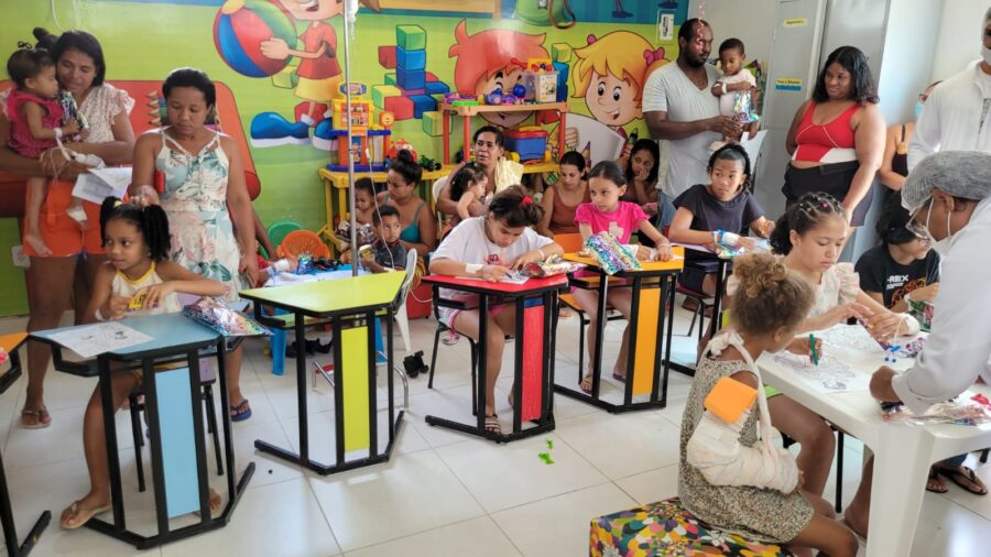 Este mês das Crianças na Santa Casa de Itabuna foi marcado por diversas atividades nos hospitais Calixto Midlej Filho, Manoel Novaes e São Lucas. A programação começou em grande estilo, no dia 8, na unidade de oncopediatria, com o Cine-Terapia para exibição do Filme Wall-E, uma animação que traz uma reflexão sobre alimentação saudável, sustentabilidade, e a responsabilidade de cada um sobre a produção e destinação dos resíduos.