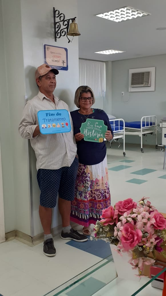 Mais um paciente oncológico bateu o sino no setor de quimioterapia da Santa Casa de Misericórdia de Itabuna. O Sr. Gildo do Sacramento Cunha começou o tratamento contra um câncer de colo retal no dia 8 de janeiro e foi liberado no dia 16/07.