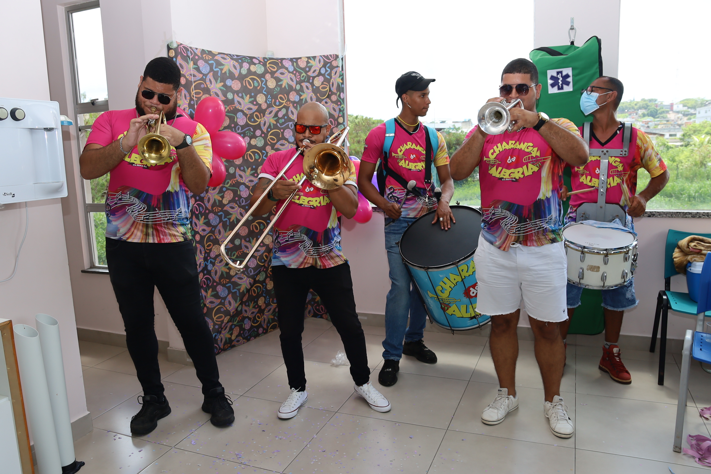 Música para quase ninguém ficar parado. Pacientes do serviço de oncologia e seus acompanhantes caíram no samba, na amanhã de terça-feira (14), nas unidades de Quimioterapia, Radioterapia e Ambulatório de Oncologia da Santa Casa de Itabuna. Os meninos da Charanga da Alegria apresentaram velhos e novos sucessos do carnaval para quem está na batalha diária para vencer o câncer.