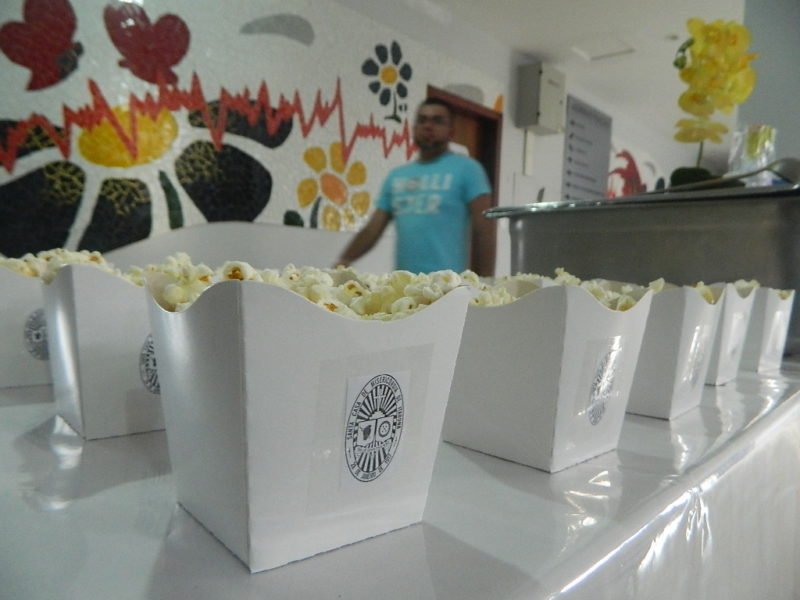 As sessões de cinema acontecem quinzenalmente no auditório do Hospital Calixto Midlej Filho e a escolha dos filmes têm sempre como temática, o humor. Para a concretização desses dois projetos foi fundamental o apoio de diversos setores da Santa Casa, a exemplo da ouvidoria, do serviço social, do marketing e da hotelaria.