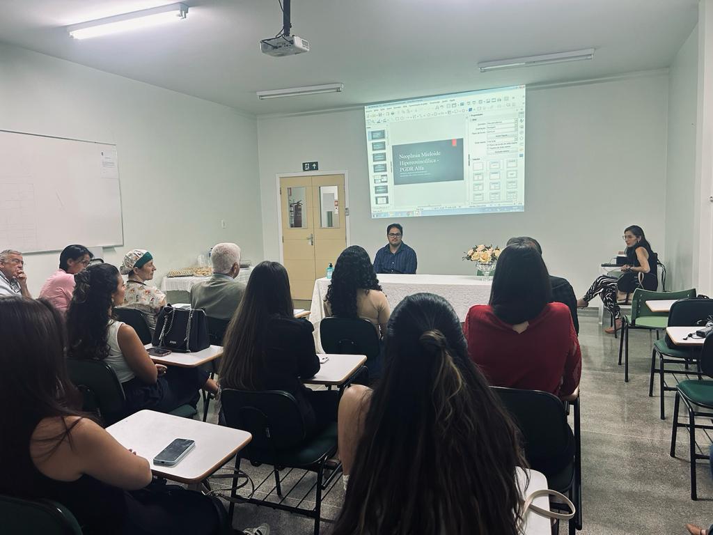 Na noite desta quinta-feira (18), a comunidade médica do Hospital Manoel Novaes reuniu-se no auditório da unidade para prestigiar a apresentação de Trabalho de Conclusão de Curso (TCC) de dois residentes do terceiro ano (R3). A apresentação do TCC faz parte de uma das novas exigências do Ministério da Saúde na validação do trabalho de conclusão da residência médica.