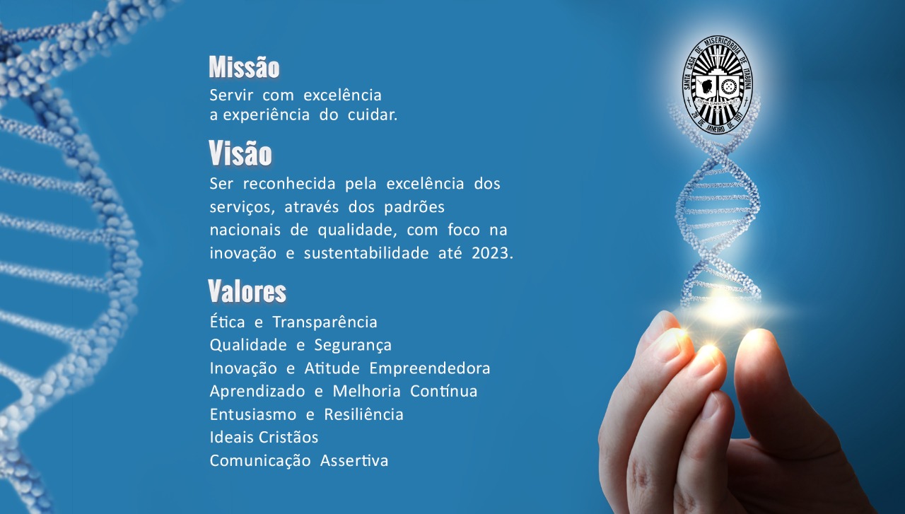 Após disseminar a sua nova identidade organizacional para 100% dos colaboradores, através do Programa Portas Abertas. A Santa Casa de Misericórdia anuncia para os seus clientes, prestadores de serviço e parceiros a sua nova : Missão, Visão e Valores .