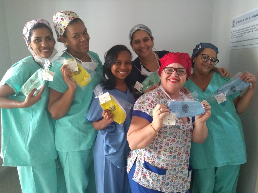 A surpresa foi organizada pelas Irmãs Auxiliadoras e a entrega foi realizada ontem (29) pela Irmã Erimita Farias junto com a equipe de eventos, nos Hospitais Calixto Midlej Filho e Manoel Novaes. As colaboradoras receberam as lembranças com muita alegria.