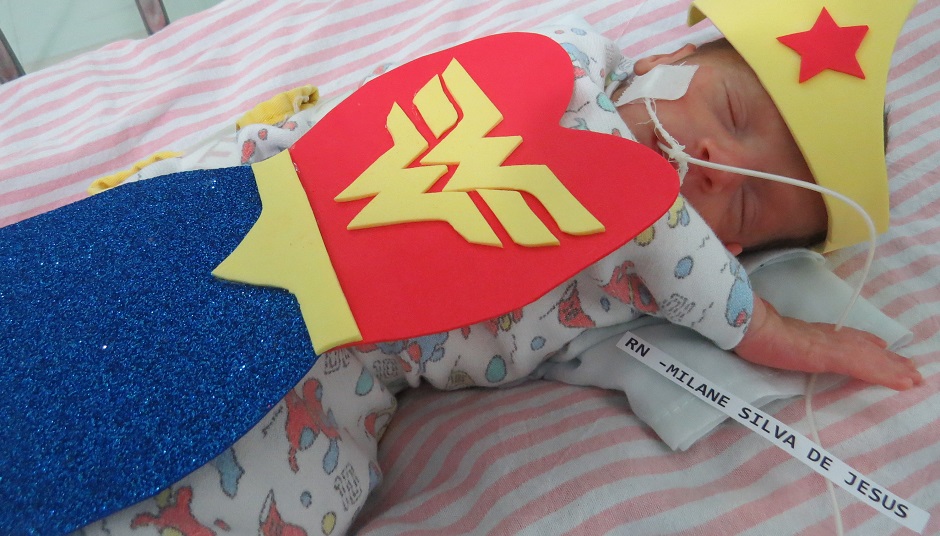 A dona de casa, Rebeca Magalhães está com a filha internada na UTI Neonatal e ficou encantada ao receber a foto de sua filha vestida com a fantasia da heroína Mulher Maravilha”.“Ela está linda! Tão pequena e ao mesmo tempo tão forte, minha pequena guerreira. E em nome dela quero agradecer a toda equipe pelo cuidado, carinho e amor dispensados a eles e a nós, disse Rebeca.
