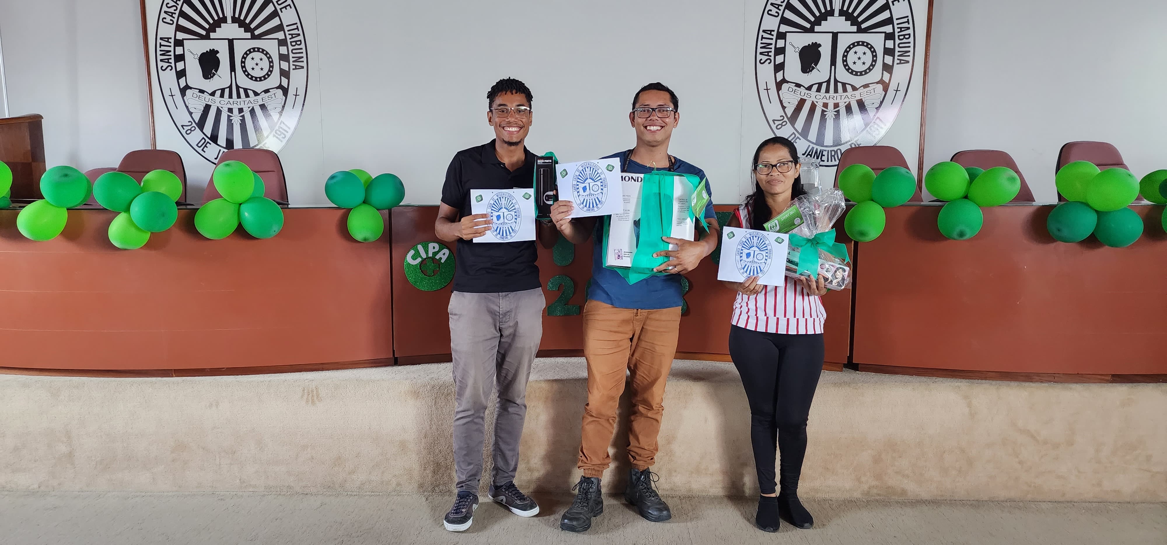 O Concurso de Talentos da XXI Semana de Prevenção de Acidente da Cipa teve como finalistas Flávio Sales Dorea (1ºcolocado), Luiz Cláudio (2º colocado) e Lucinelma Pereira Santos (3º colocado). Eles forma premiados com air fryer, prancha de cabelo, garrafa térmica, além de uma quantia em dinheiro. Já os demais participantes do concurso e os integrantes da Cipa que contribuíram para a organização das atividades no decorrer da semana conquistaram um dia de folga.
