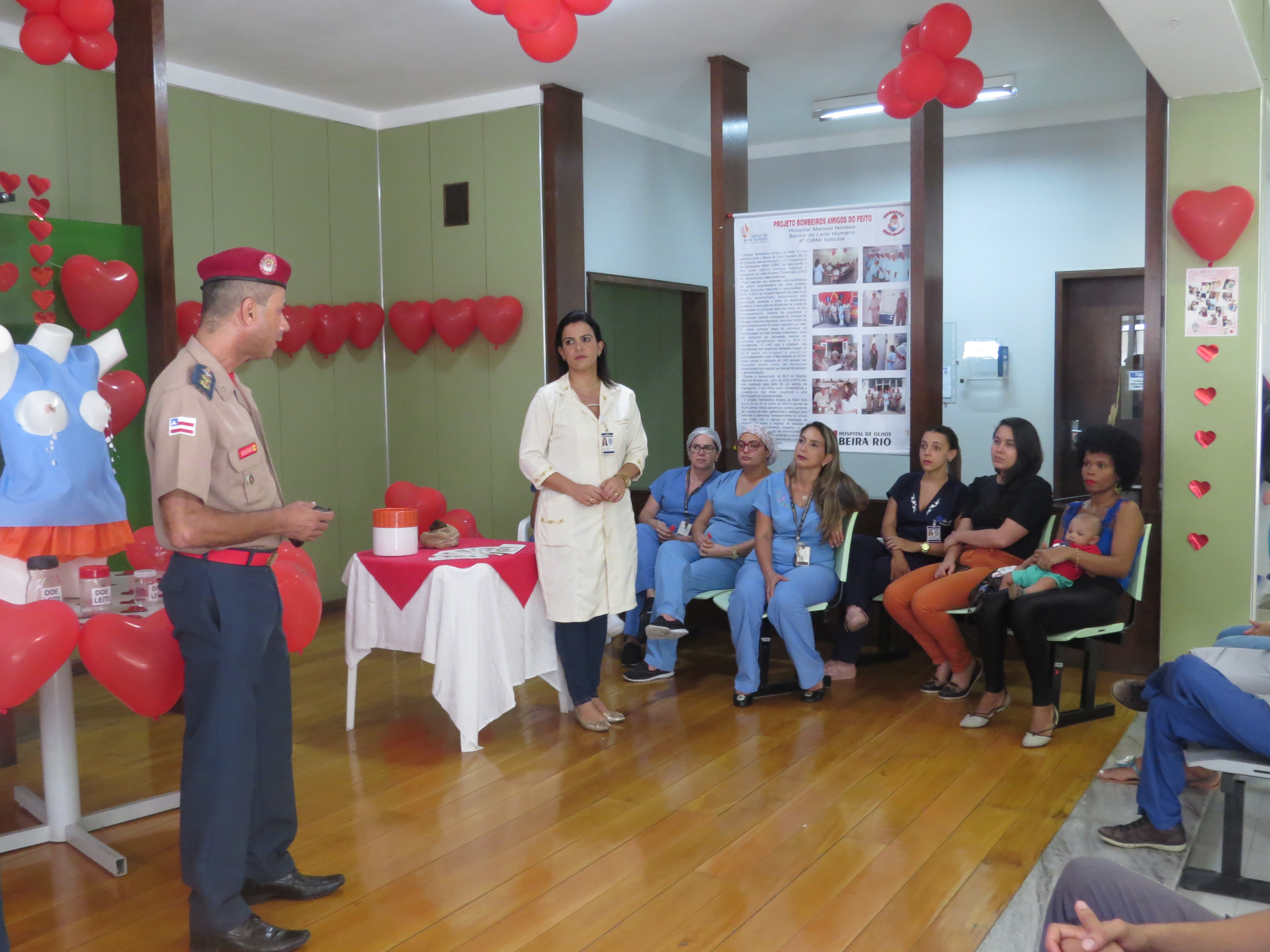 Os representantes do Corpo de Bombeiros marcaram presença no evento. Na oportunidade, o Tenente Coronel Roberto Ferreira e o Subtenente André Azevedo explicaram como é feito o trabalho da corporação em parceria com o Banco de Leite para a captação e coleta de leite nas casas das doadoras. É uma forma de garantir o estoque do banco de leite. Boa parte do leite coletado é através da rota do leite. Cerca de 40 a 50 bebês são beneficiados toda semana”, afirmou. A enfermeira Kátia fez uma demonstração do processo de pasteurização do leite materno.